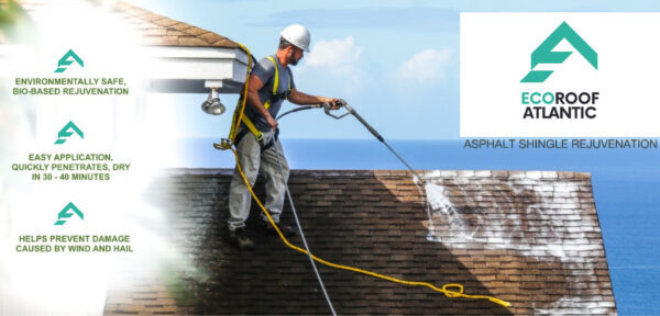 Eco Roof Atlantic is an asphalt shingle rejuvenation process that replaces the oils and resins lost from an ageing roof.